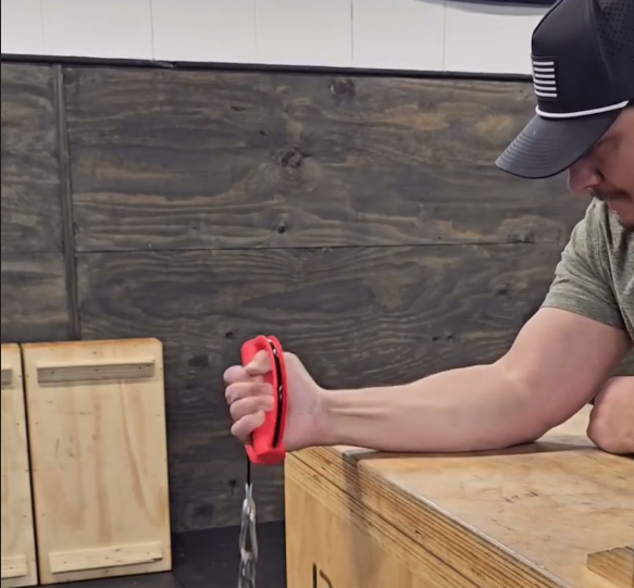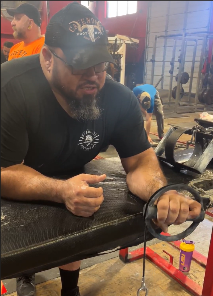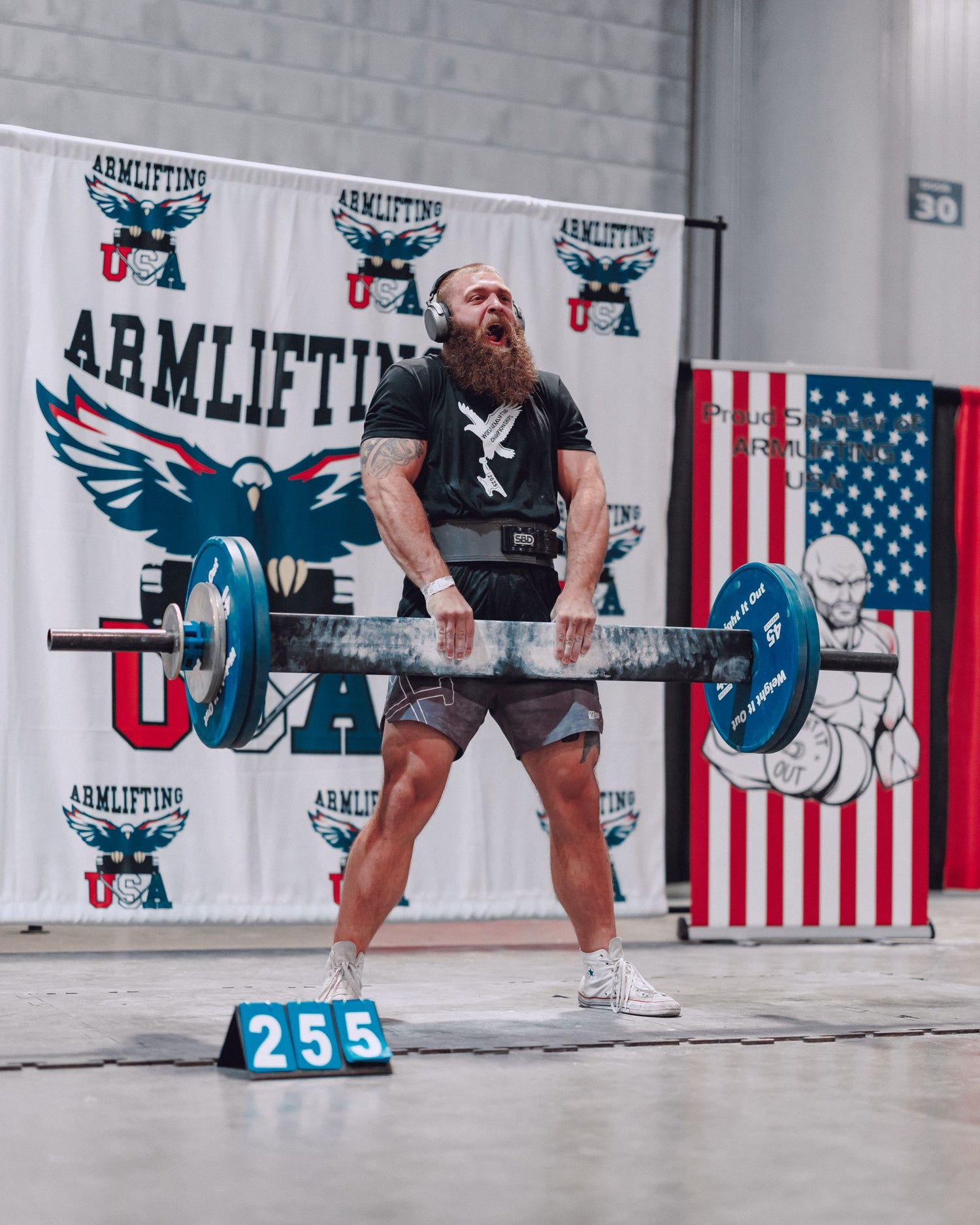 A Grip athlete in a winning war against gravity. He holds the American record for the 2"x5" Saxon bar at 255lb!